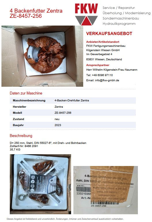 Maschinenbezeichnung 4-Backen-Drehfutter Zentra